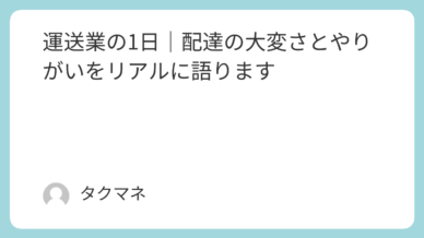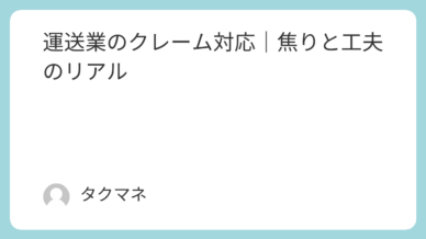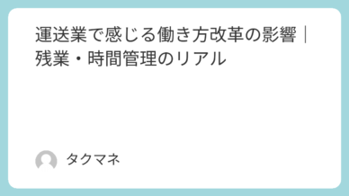 はじめまして。自由を目指す30代男「タクマネ」です。自由を追いかけて迷子中!今回は、僕自身が運送業に転職してから強く感じたこと――**「配達が早い人にはちゃんと理由がある」**という話をしていきます。...