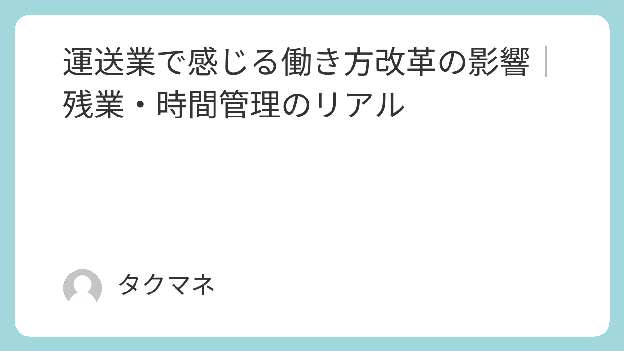 運送業で感じる働き方改革の影響|残業・時間管理のリアル