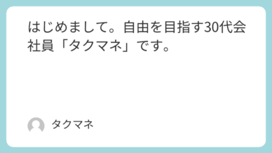 自己紹介 はじめまして。自由を目指す30代会社員「タクマネ」です。 自由を追いかけて迷子中!はじめまして|自由な人生を目指す30代男のブログですこのブログを運営しているタクマネです。数あるブログの中から、このブログを見つけていただきありがとうございます。このブログでは... 2026.03.16 自己紹介